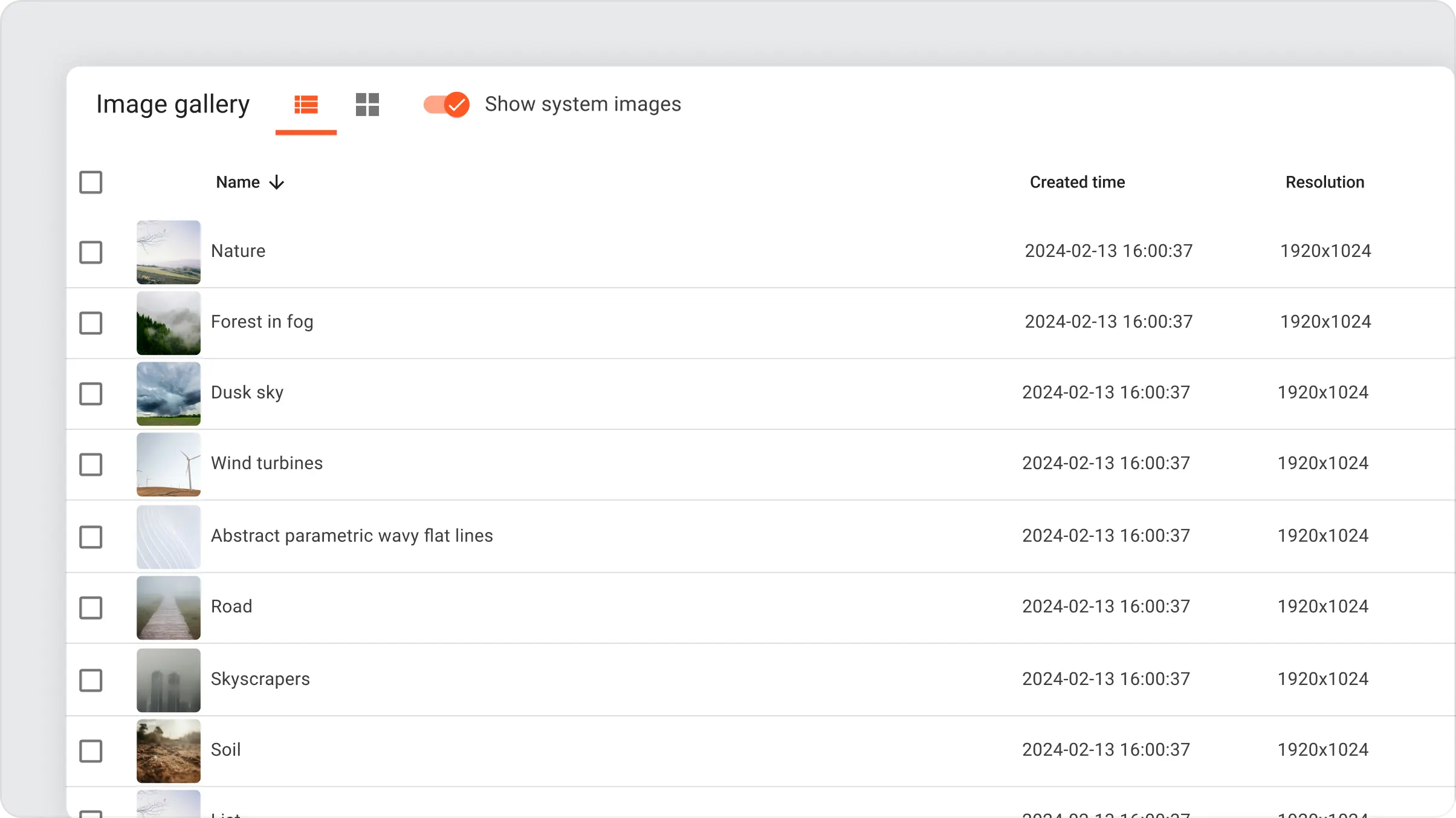 To address this issue, we’ve introduced a major update in how images are handled within the platform. A central aspect of this update is the introduction of the Image Gallery. By moving dashboards to a separate entity and utilizing our internal, relative links for storing image references, we’ve significantly improved efficiency. This change minimizes the size of dashboard JSON files, streamlining both loading and editing processes. The Image Gallery simplifies the process of uploading, organizing, and selecting images.