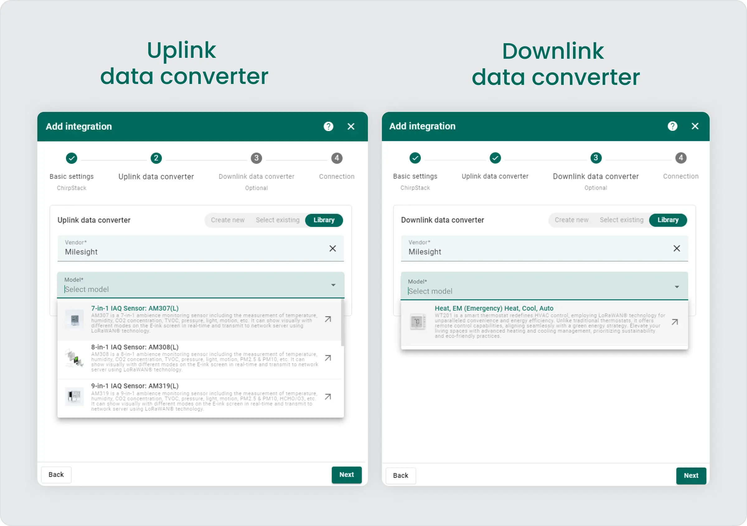 With this new feature, you can now easily select the appropriate device from the library based on its vendor and model, speeding up the process of configuring new integrations.